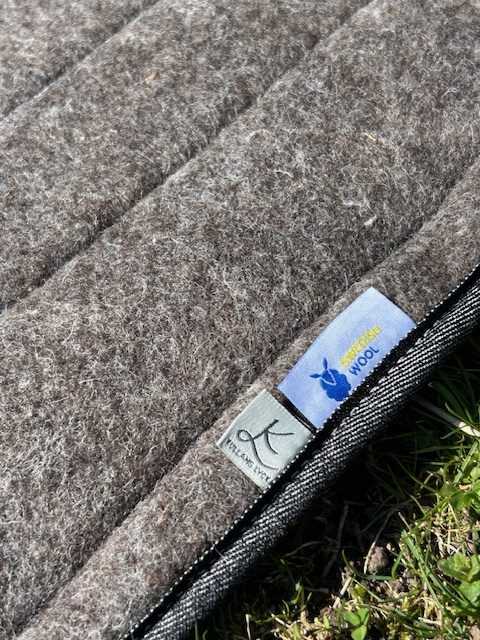 Ullen kommer från våra svenska får, i samarbete med CC Wool som driver en ullinsamlingsstation i Laholm. Den är rensad, tvättad och filtad. Sömnaden har sedan skett i Småland. 100% svensk ull! Perfekt att ta med på utflykt eller lägga på en stol utomhus/inomhus. En produkt som andas och värmer samtidigt – ullens fenomenala egenskaper!